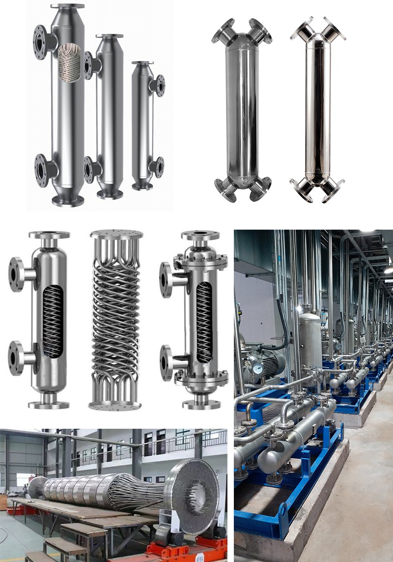 1.強(qiáng)化傳熱:螺旋纏繞式換熱器每一層換熱管束均以螺旋結(jié)構(gòu)按一定規(guī)律均勻纏繞在殼體內(nèi)。這種結(jié)構(gòu)一方面延長了管程長度,換熱充分;另一方面改變了殼程內(nèi)流體狀態(tài),使流體呈強(qiáng)烈的湍流狀態(tài)流動(dòng),強(qiáng)化傳熱,大大提高換熱系數(shù)。逆流換熱,導(dǎo)熱系數(shù)高達(dá)到14000W/(㎡·℃)。